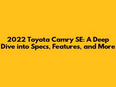 Hey everyone! Today, we're diving headfirst into the 2022 Toyota Camry SE, a car that's been turning heads and winning hearts. This isn't just any Camry; the SE trim packs a punch with its sporty design and performance upgrades. So, if you're curious about what makes this car tick, you've come to the right place. We're going to break down everything from the engine specs to the interior features, giving you a comprehensive look at what the 2022 Camry SE has to offer. Buckle up; it's going to be a fun ride!