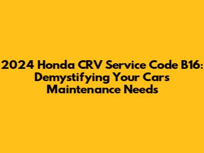 Alright, folks, let's dive into the nitty-gritty of your 2024 Honda CRV, specifically, that pesky Service Code B16. If you're seeing this pop up on your dashboard, don't sweat it! It's your car's way of saying, "Hey, I need some lovin'!" But what exactly does it entail? And more importantly, what do you need to do about it? Let's break it down, making it super easy to understand. Think of this as your go-to guide for understanding and addressing the B16 service code. We'll cover everything from what the code signifies to how you can tackle it, ensuring your CRV stays in tip-top shape. This knowledge will not only save you money but also empower you to take charge of your car's maintenance. So, buckle up, and let's get started!
