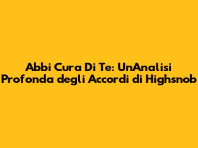 Abbi Cura Di Te, un brano iconico di Highsnob, ha toccato le corde di molti ascoltatori, grazie alla sua melodia avvincente e al testo toccante. Se sei un musicista alle prime armi o un appassionato che desidera suonare questa canzone, questa guida completa ti fornirà tutto ciò di cui hai bisogno. Inizieremo esplorando gli accordi di Abbi Cura Di Te, per poi addentrarci in un tutorial dettagliato e concludere con un'analisi approfondita del significato del testo. Preparati a scoprire i segreti di questo brano straordinario e a suonarlo con sicurezza! Capire gli accordi di Highsnob e come suonare Abbi Cura Di Te può aprirti un mondo di possibilità musicali. Il brano è un ottimo punto di partenza per chiunque voglia imparare a suonare la chitarra o il pianoforte, grazie alla sua struttura armonica relativamente semplice ma efficace.
