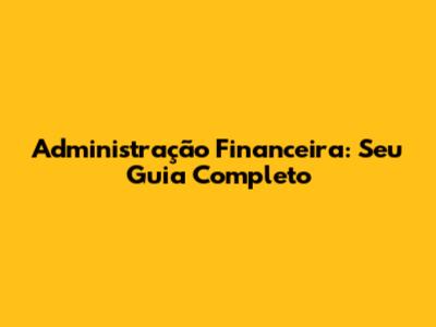 Administração Financeira: Seu Guia Completo