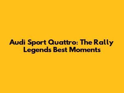 Audi Sport Quattro: The Rally Legend's Best Moments