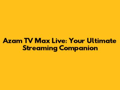 Azam TV Max Live: Your Guide To Streaming Excellence