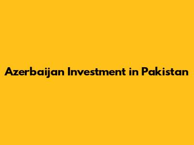 Azerbaijan's Investment Opportunities In Pakistan