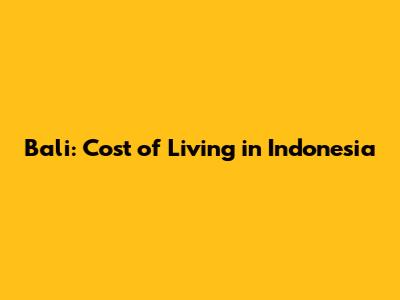 Bali: Cost Of Living In Indonesia