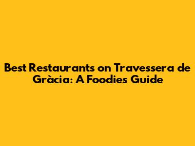 Best Restaurants On Travessera De Gràcia: A Foodie's Guide