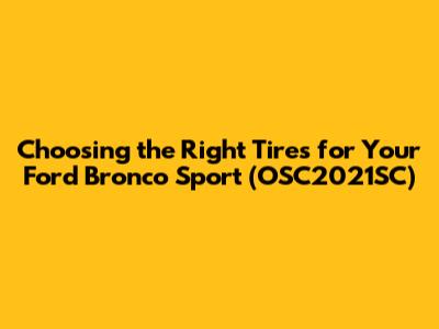 Hey guys! Thinking about new tires for your Ford Bronco Sport? You've come to the right place. Choosing the correct tires is super important, especially if you're looking to maximize your Bronco Sport's performance, whether it's for daily driving, off-road adventures, or tackling tough weather conditions. The OSC2021SC specification might sound like a secret code, but it's likely related to a specific model year or trim level, so let's break down what you need to consider to get the best rubber for your ride. Remember, the right tires can dramatically improve your driving experience, from handling and comfort to safety and fuel efficiency. So, buckle up, and let's dive into the world of Bronco Sport tires!