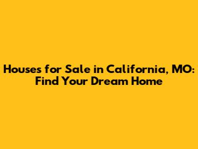 Hey guys! Are you looking for houses for sale in California, Missouri? You've come to the right place! Buying a home is a huge step, and finding the perfect place in a town like California, MO, requires careful consideration. Let’s dive into everything you need to know to make your house-hunting journey a success.