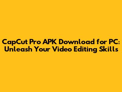 CapCut Pro APK Download For PC: Unleash Your Video Editing Skills