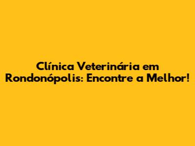 Clínica Veterinária Em Rondonópolis: Encontre A Melhor!