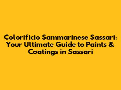 Colorificio Sammarinese Sassari: Your Go-To Guide For Paints & Coatings