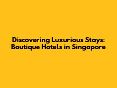 Discovering Luxurious Stays: Boutique Hotels In Singapore