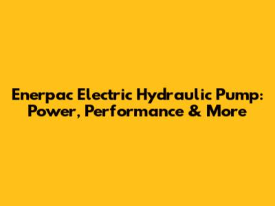 Enerpac Electric Hydraulic Pump: Power, Performance & More