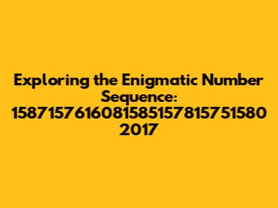 Hey guys! Today, we're diving headfirst into something a little quirky and unusual: the number sequence 1587157616081585157815751580 2017. Now, I know what you're thinking – what on earth could this possibly mean? Is it some kind of secret code? A timestamp from a distant galaxy? Or just a random string of digits that someone decided to throw into the digital void? Well, buckle up, because we're going to explore some potential interpretations and have a bit of fun along the way.