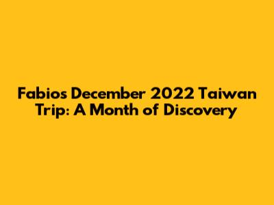 Fabio In Taiwan: December 2022 Adventures