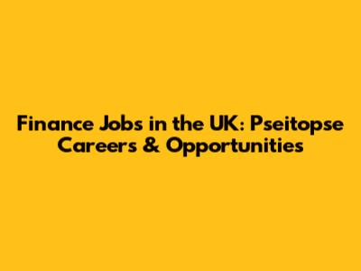 Finance Jobs In The UK: Pseitopse Careers & Opportunities