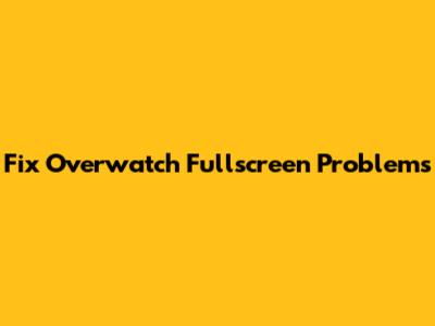 Fix Overwatch Fullscreen Problems
