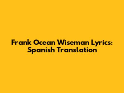Frank Ocean Wiseman Lyrics: Spanish Translation