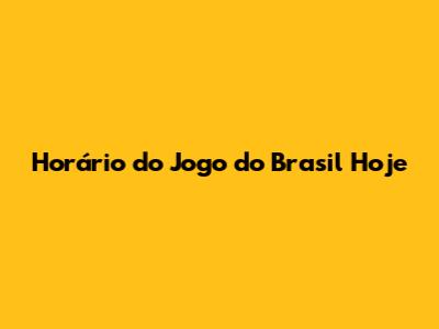 Horário Do Jogo Do Brasil Hoje
