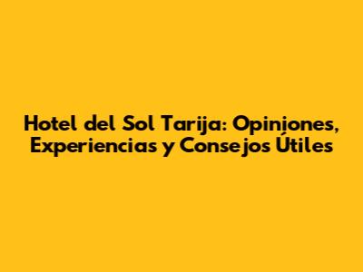 Ahora que hemos analizado las opiniones sobre el Hotel del Sol, les brindaré algunos consejos útiles para planificar su estadía y aprovechar al máximo su viaje a Tarija: