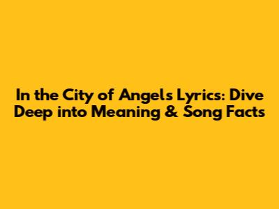 Hey guys! Have you ever found yourself humming a tune and suddenly wondered, “What’s the real story behind this song?” Well, today we’re diving deep into the heart of the song “In the City of Angels.” Get ready to explore the lyrics, uncover hidden meanings, and discover some cool facts about this awesome track. Whether you’re a die-hard fan or just curious, there’s something here for everyone. So, let’s get started and unravel the magic behind those words and melodies!