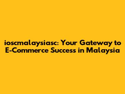 Ioscmalaysiasc: Your Gateway To E-Commerce Success In Malaysia