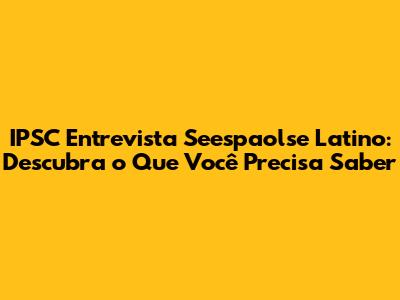 IPSC Entrevista Seespaolse Latino: Descubra O Que Você Precisa Saber