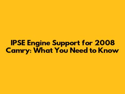 IPSE Engine Support For 2008 Camry: What You Need To Know