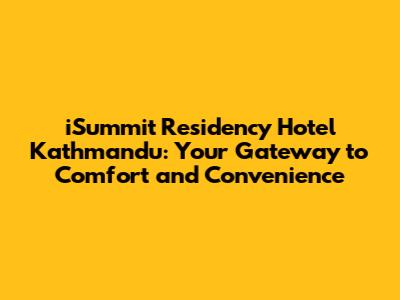 Hey there, travel enthusiasts! Are you planning a trip to the vibrant city of Kathmandu? Well, look no further because we're diving deep into the iSummit Residency Hotel Kathmandu, your potential home away from home in the heart of Nepal. This isn't just any hotel, guys; it's a launchpad for your adventures, offering comfort, convenience, and a touch of luxury. So, buckle up, because we're about to explore everything you need to know about this fantastic establishment, from its prime location to its top-notch amenities. Whether you're a seasoned traveler or a newbie exploring the world, this guide is designed to give you the inside scoop on why iSummit Residency might just be the perfect spot for your Kathmandu getaway. We'll cover everything from the rooms and services to the surrounding attractions, ensuring you're well-prepared for an unforgettable experience. Let's get started, shall we?