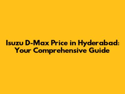 Hey there, truck enthusiasts and potential Isuzu D-Max buyers! If you're looking for information on the Isuzu D-Max price in Hyderabad, you've come to the right place. We're diving deep into everything you need to know, from the different variants available to factors that influence the final cost. Plus, we'll throw in some tips to help you make an informed decision. So, buckle up, and let's get started!