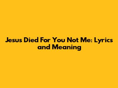 Jesus Died For You Not Me: Lyrics And Meaning