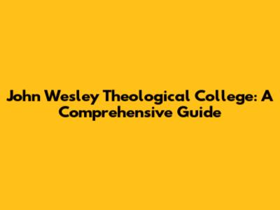John Wesley Theological College: A Comprehensive Guide