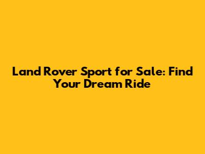 Land Rover Sport For Sale: Find Your Dream Ride