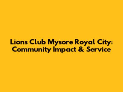 Lions Club Mysore Royal City: Community Impact & Service