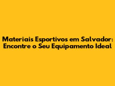 Materiais Esportivos Em Salvador: Encontre O Seu Equipamento Ideal