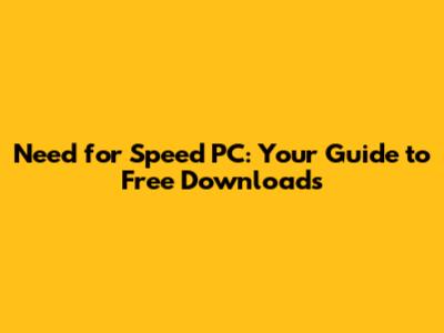 Need For Speed PC: Free Download Guide