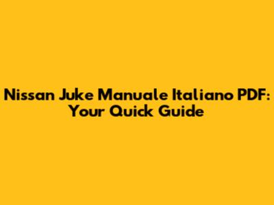 Nissan Juke Manuale Italiano PDF: Your Quick Guide