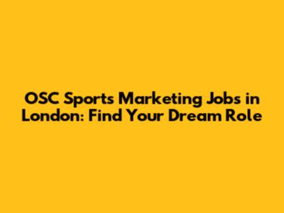 OSC Sports Marketing Jobs In London: Find Your Dream Role