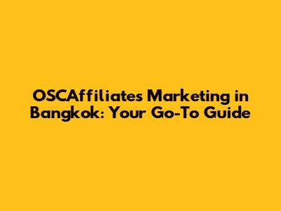 OSCAffiliates Marketing In Bangkok: Your Go-To Guide