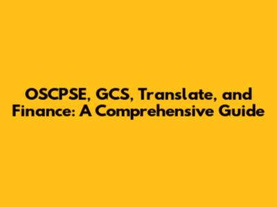 OSCPSE, GCS, Translate, And Finance: A Comprehensive Guide