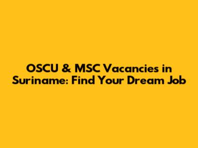 OSCU & MSC Vacancies In Suriname: Find Your Dream Job