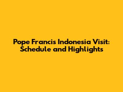 Pope Francis' Indonesia Visit: Schedule And Highlights