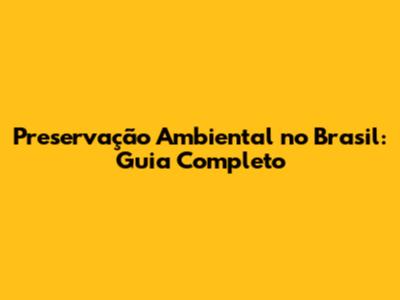Preservação Ambiental No Brasil: Guia Completo