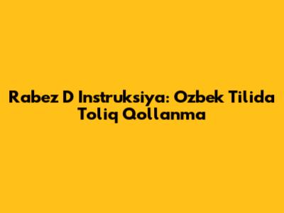 Rabez D Instruksiya: O'zbek Tilida To'liq Qo'llanma