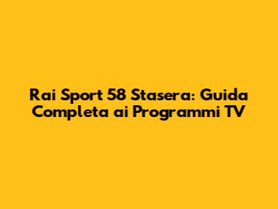Rai Sport 58 Stasera: Guida Completa Ai Programmi TV