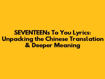Hey there, fellow Carats! If you're anything like me, you're constantly on the hunt for a deeper understanding of SEVENTEEN's incredible music. Their songs are packed with emotion and meaning, and sometimes, the original language isn't enough to fully grasp the message. Today, we're diving deep into the Chinese translation of 'To You', a song that's already captured hearts worldwide. We'll explore the lyrics, break down the Chinese translation, and uncover the layers of meaning behind this beautiful track. Get ready to have your heartstrings pulled and your understanding of SEVENTEEN's artistry deepened! Let's get started, guys!