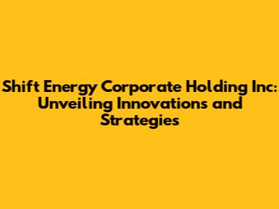 Hey guys! Ever wondered about the companies shaping our future energy landscape? Today, we're diving deep into Shift Energy Corporate Holding Inc., a name that's been buzzing in the energy sector. This isn't just another corporate overview; it's a comprehensive exploration of what makes Shift Energy tick, its strategic holdings, and the innovative approaches it's bringing to the table. So, buckle up and let's get started!