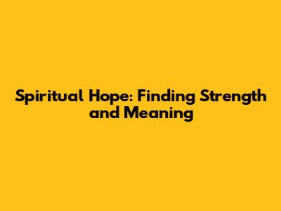 Spiritual Hope: Finding Strength And Meaning