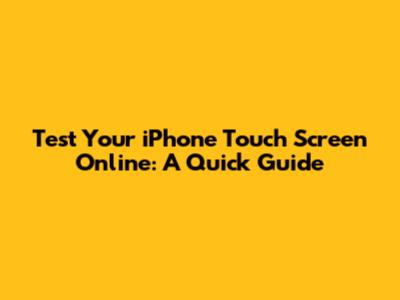 Test Your IPhone Touch Screen Online