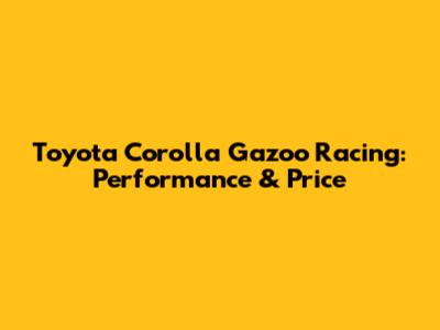 Toyota Corolla Gazoo Racing: Performance & Price