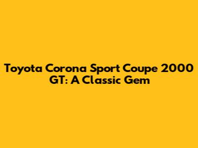 Toyota Corona Sport Coupe 2000 GT: A Classic Gem